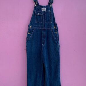 CLASSIC DARK WASH DENIM OVERALLS CONTRAST STITCHING SMALL FIT FUN FRONT POCKET AS-IS