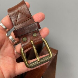 AS-IS SOFT OILED LEATHER BELT W/ TEXTURED BRASS ROLLER BUCKLE