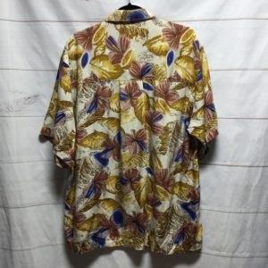 100% RAYON SHORT SLEEVE BUTTON UP SHIRT AUTUMN TROPICAL PRINT