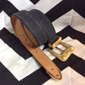 BRUSHED LEATHER BELT W/CHUNKY MATTE FINISHED GOLD HARDWARE