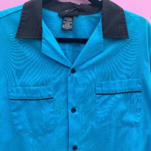 *AS-IS* VERICAL STRIPED & EMBROIDERED DETAIL SHORT SLEEVE BUTTON DOWN SHIRT, COCONUT BUTTONS