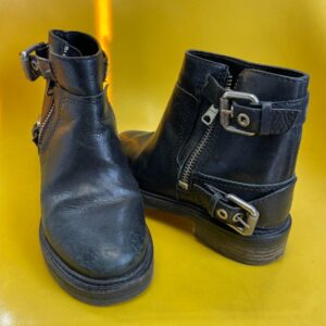 ADORABLE CHUNKY LEATHER COMBAT BOOTS CHUNKY ZIPPERS AND BUCKLES