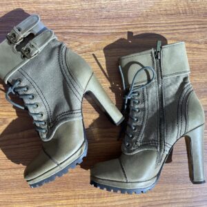 CHUNKY CANVAS & LEATHER LACEUP BOOTS SUPER HIIGH HEELED BOOTS