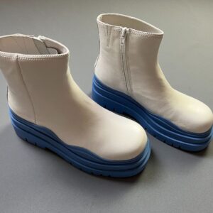 NWT SO COOL! WHITE & BLUE PLATFORM BOOTS CHUNKY RUBBER SOLE