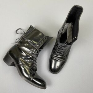 GORGEOUS! PATENT LEATHER LACEUP COMBAT BOOTS CHUNKY HEEL MADE IN SPAIN