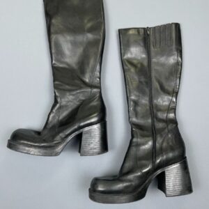 1990S | Y2K KNEE HIGH LEATHER CHUNKY PLATFORM BOOTS