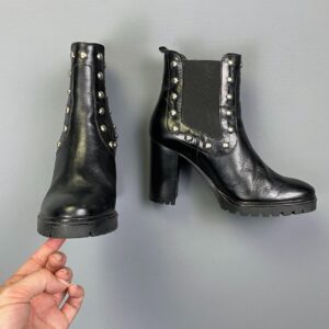 MADE IN ITALY CHUNKY HEEL ROUND TOE SUPPLE LEATHER ANKLE BOOTS