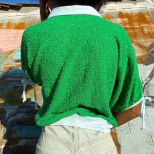 RECONSTRUCTED CROPPED TERRYCLOTH COLLARED SHIRT WHITE TRIM