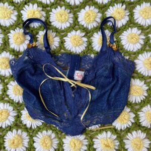 Y2K ADORABLE FAUX DENIM 2 PIECE SET TOP & SHORTS WITH GARTER BELT