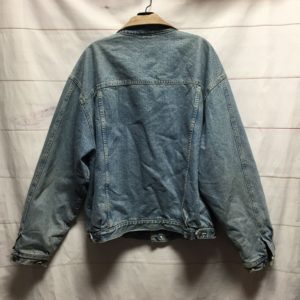 CLASSIC BANANA REPUBLIC DENIM JACKET WITH LEATHER FRONT POCKETS AND COLLAR MULTIPLE UNIQUE POCKETS