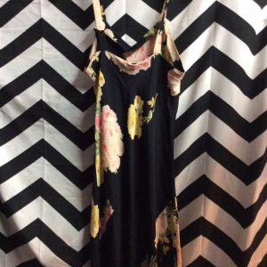 1990’S DRESS – RAYON – SKINNY STRAPS – DIAGONAL STRIPED COLOR BLOCK – FLORAL PRINT DESIGN
