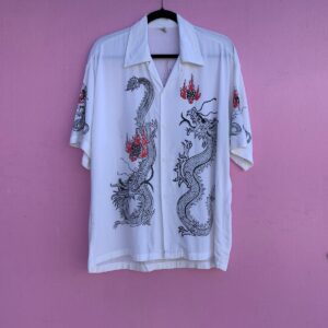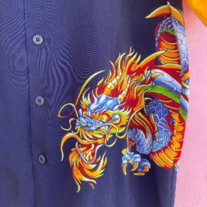 KILLER! 100% SILK FULL FRONT DRAGON PRINT HAWAIIAN SHIRT, COCONUT BUTTONS