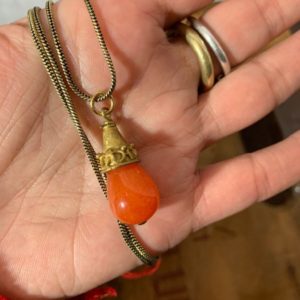 OXIDIZED BRASS TEAR DROP PENDANT W/ EGYPTIAN HIEROGLYPHIC DESIGN NECKLACE