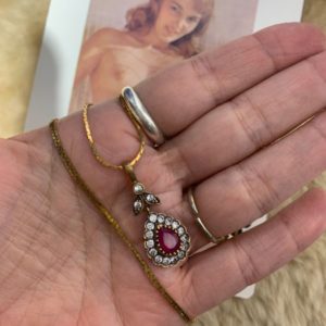 RHINESTONE TEARDROP GOLD AND SILVER PENDANT NECKLACE