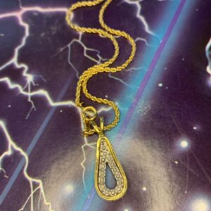 1980S DEADSTOCK TEARDROP SHAPED PENDANT W/ LETTER S INSIGNIA THIN CHAIN