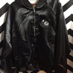 DARE SATIN JACKET ZIP-UP W/EIGHT-BALL PATCH LEFT FRONT