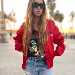 CLASSIC SATIN DARE BOMBER JACKET WITH SCREEN PRINTED LOGO ON BACK