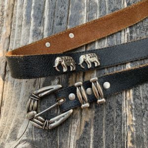 AWESOME 1990S NARROW CUT LEATHER BELT ELEPHANT HARDWARE