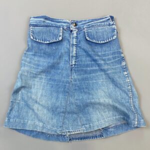 1970S PATCHWORK MINI A-LINE DENIM SKIRT FRONT WELT POCKETS