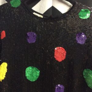 1980S PRIMARY COLOR POLKA DOT SEQUIN TOP SILK LINED