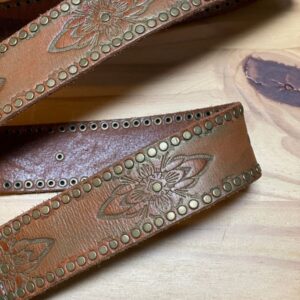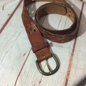 VINTAGE LEATHER BELT W/ DIAMOND SHAPED HOLE DESIGN FULL LENGTH