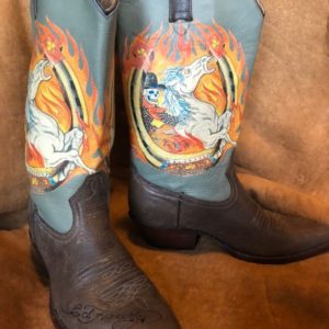 VINTAGE ED HARDY COWGIRL BOOTS WITH PEGASUS FLAME GRAPHIC