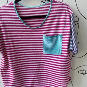 ADORABLE 1980S-90S CROPPED & COLOR BLOCK STRIPED POCKET TEE