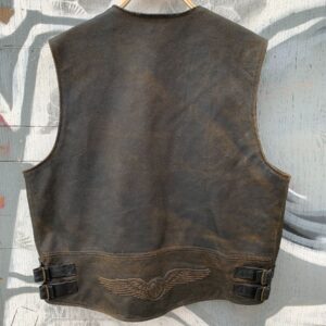 HEAVY CRACKED LEATHER HARLEY DAVIDSON LEATHER ZIP UP MOTORCYCLE VEST FRONT CLOSING POCKETS