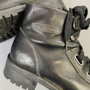 LACE UP HARLEY DAVIDSON MOTORCYCLE BOOTS METAL LOGO PLAQUE CONTRAST STITCHING