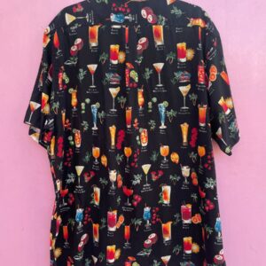 FUN! TROPICAL MIXED DRINK ALLOVER PRINT HAWAIIAN STYLE SHIRT COTTON RAYON BLEND
