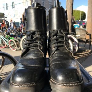 STEAMPUNK MID HEIGHT LEATHER COMBAT LACEUP BOOTS WITH TEXTURED DOUBLE BUCKLE
