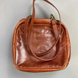 ITALIAN MADE SQUARED LEATHER CROSS BODY SHOULDER BAG BRASS HARDWARE