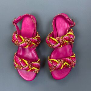 BRIGHT! ITALIAN MADE BRAIDED FLAT PLATFORM SANDALS GOLD BUCKLE