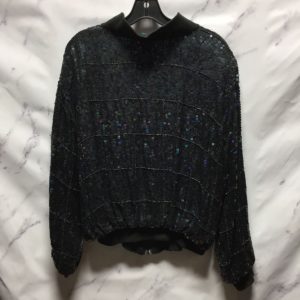 1980S SEQUIN BOMBER JACKET BEADED GRID DESGN RIBBED COLLAR AND CUFFS