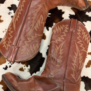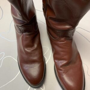 JUSTIN COWBOY BOOTS – SHINY LEATHER W/CONTRAST STITCHING as-is