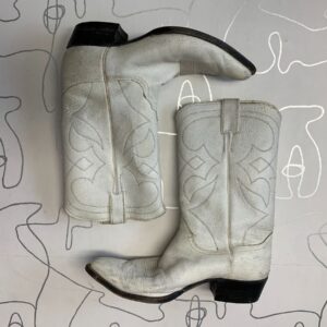 AS IS – RETRO 1960S CLASSIC WHITE LEATHER COWBOY BOOTS WITH STITCHING
