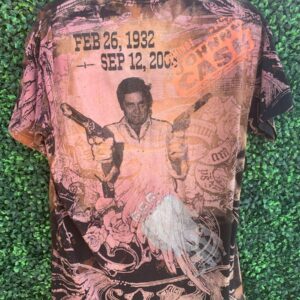 JOHNNY CASH HAND PAINTED FRONT AND BACK GRAPHIC FLORAL AND GUITAR ALL OVER PRINT T-SHIRT