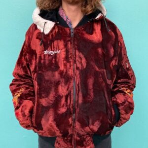 AS-IS HOODED ZIP UP PUFFY CRUSHED VELVET DRAGON EMBROIDERED SUKAJAN BOMBER JACKET