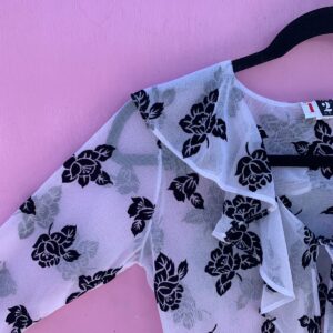 NWT 1990S DEADSTOCK FLOCKED VELVET ROSE DESIGN SHEER TIE FRONT TOP