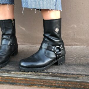 LEATHER HARLEY ANKLE BOOTS HARNESS BUCKLE