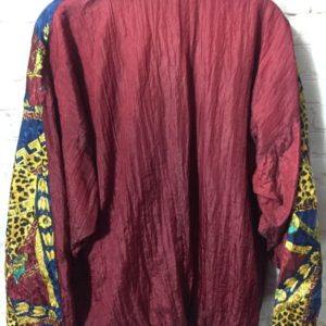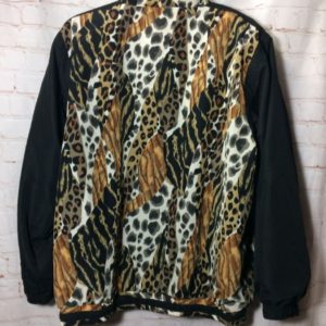 1980’S LEOPARD PRINT IN COLOR BLOCK DESIGN NYLON ZIP-UP BOMBER JACKET
