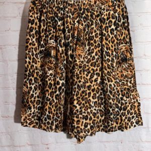 1990’S CHEETAH/LEOPARD PRINT RAYON BERMUDA SHORTS W/ ELASTIC WAIST