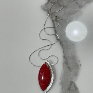 POLISHED FOSSIL STONE NECKLACE IN STERLING SILVER SETTING & CHAIN *HALLMARKED *HALLMARKED