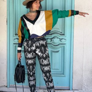 CUTE! 1980S-90S 100% SILK COLORBLOCK JACKET SEQUIN ACCENTS