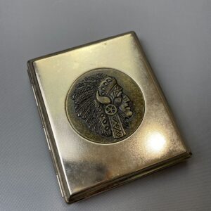 STRUCTURED METAL CIGARETTE CASE NATIVE AMERICAN MEDALLION
