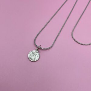 *PISCES* MINI SILVER PLATED ZODIAC MEDALLION CHARM NECKLACE – SNAKE CHAIN