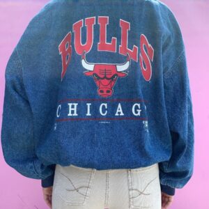 AS IS- AMAZING DENIM CHICAGO BULLS GRAPHIC ZIP UP JACKET