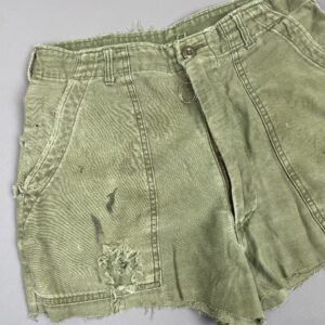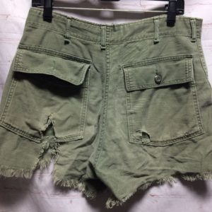 *AS-IS* PERFECTLY DISTRESSED 1960S ARMY DRAB FATIGUE MILITARY SATEEN OG-107 CUT OFF SHORTS