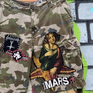 HAND CUSTOMIZED PUNK PATCHED MILITARY CAMO CARGO SHORTS