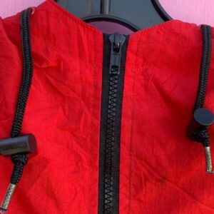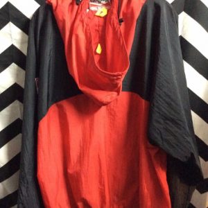 RED ADVENTURE TEAM HOODED ZIPPER FRONT LIGHT WEIGHT WINDBREAKER W/ BLACK SLEEVES